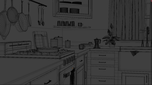 Everything is textured and modeled by me. I used this scene to learn how to model plants and how to prioritize models better. Still making them look good without sacrificing unnecessary time on objects you can barely see. I learned of tricks on how to improve render times and noise when working with see through objects like glass and curtains. Although I would have preferred to keep in those light distortions, my laptop continues to be my limitation. I would like to be able to see my lighting adjustment without it sounding like it might take flight any second.